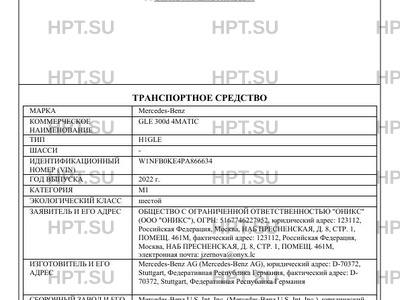 | Коммерческое наименование | GLE 300d 4MATIC |