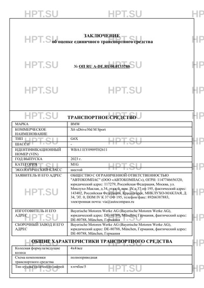| Коммерческое наименование | X6 xDrive30d M Sport |