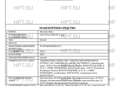 | Коммерческое наименование | GLE 350 de 4MATIC Coupe |