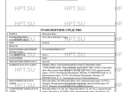 | Коммерческое наименование | GLE 300 d 4MATIC Coupe |