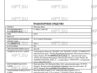 | Коммерческое наименование | V 300D L 4MATIC |