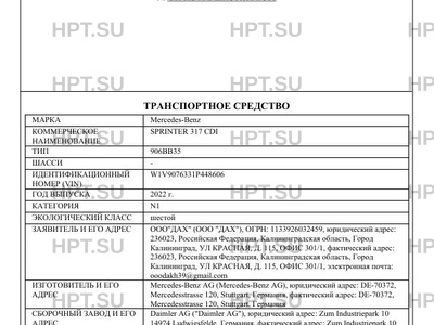 | Коммерческое наименование | SPRINTER 317 CDI |