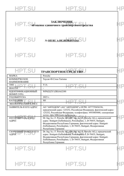 | Коммерческое наименование | Taycan 4S Cross Turismo |