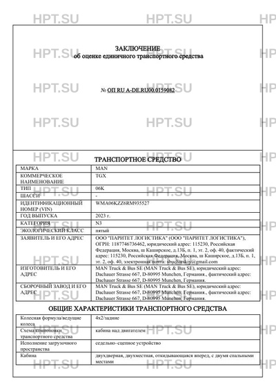 | Категория ТС | N3 |
