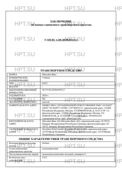 | Коммерческое наименование | V-klasse |