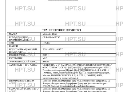 | Предприятие-изготовитель | Mercedes-Benz AG (Mercedes-Benz AG), юридический адрес: D70372, Stuttgart, Федеративная Республика Германия, фактический адрес: D70372, Stuttgart, Федеративная Республика Германия |