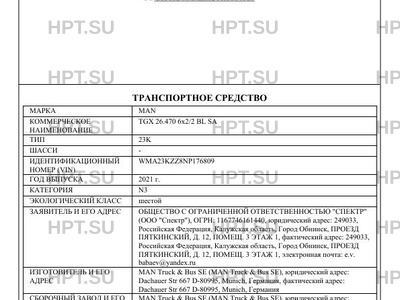 | Марка ТС | MAN |