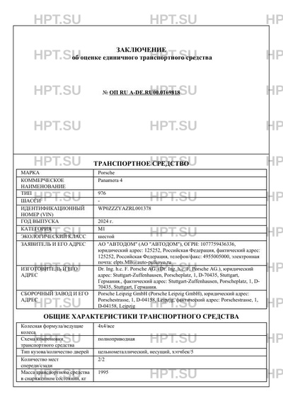| Предприятие-изготовитель | Dr. Ing. h.c. F. Porsche AG. |