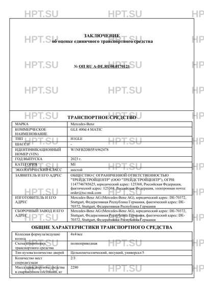 | Коммерческое наименование | GLE 400d 4 MATIC |