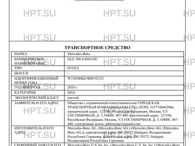 | Коммерческое наименование | GLE 300 d 4MATIC |