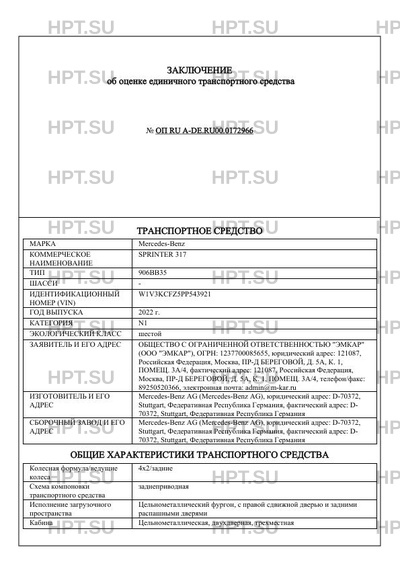 | Коммерческое наименование | SPRINTER 317 |