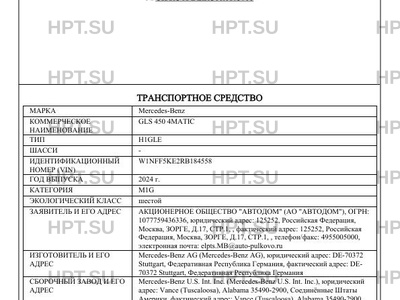 | Коммерческое наименование | GLS 450 4MATIC |