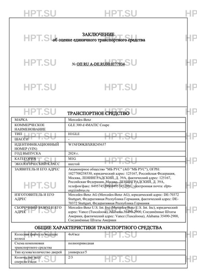 | Коммерческое наименование | GLE 300 d 4MATIC Coupe |