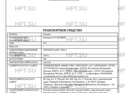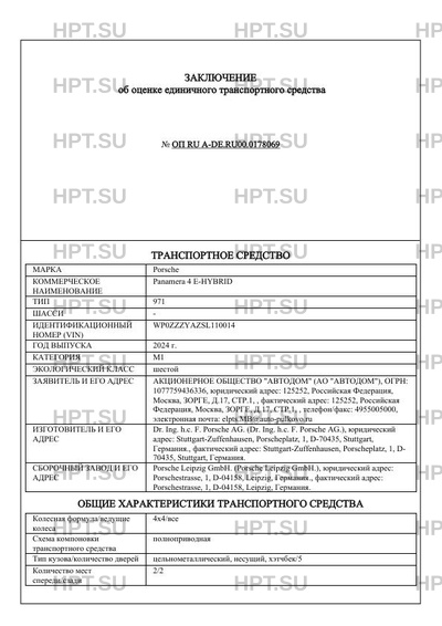| Коммерческое наименование | Panamera 4 E-HYBRID |