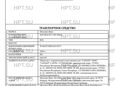 | Коммерческое наименование | MAYBACH S 580 4Matic |