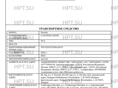 | Коммерческое наименование | CAYENNE COUPE |