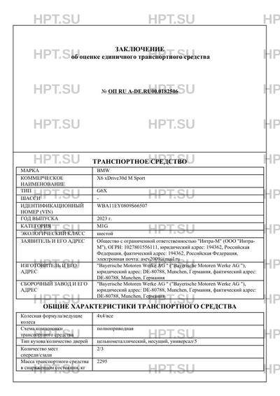 | Коммерческое наименование | X6 xDrive30d M Sport |