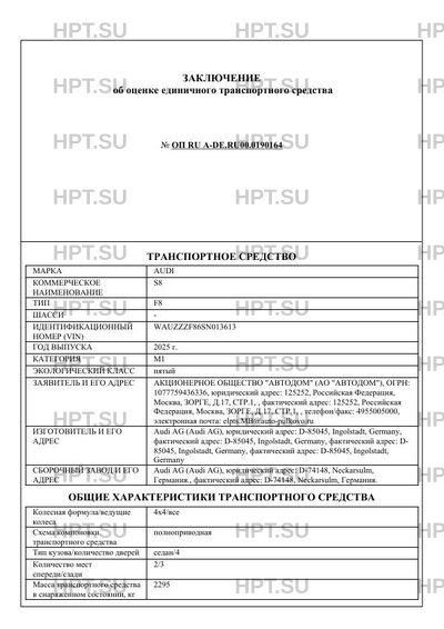 | ДВС | Audi AG, DWKA, четырехтактный, с искровым зажиганием, с двойным турбонаддувом |