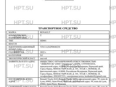 | Марка ТС | RENAULT |