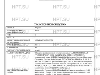 | Тип ТС | Y |