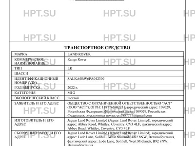 | Предприятие-изготовитель | Jaguar Land Rover Limited |