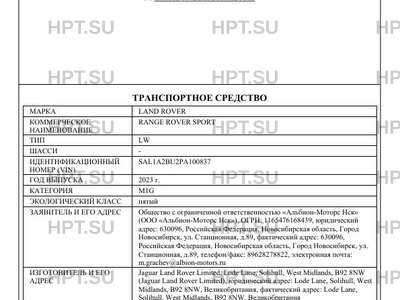 | Коммерческое наименование | RANGE ROVER SPORT |