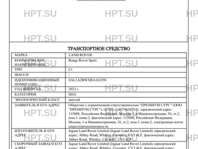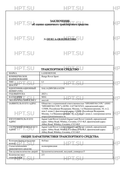 | Коммерческое наименование | Range Rover Sport |