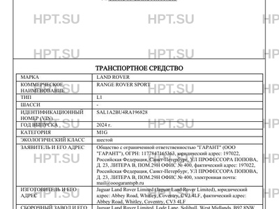 | Коммерческое наименование | RANGE ROVER SPORT |