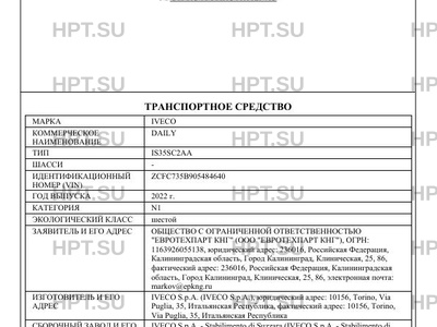 | Марка ТС | IVECO |