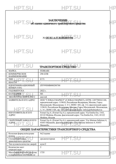 | Предприятие-изготовитель | Ferrari S.p.A. |