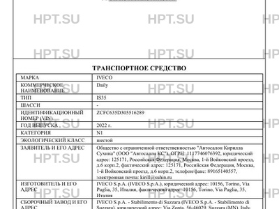 | Марка ТС | IVECO |