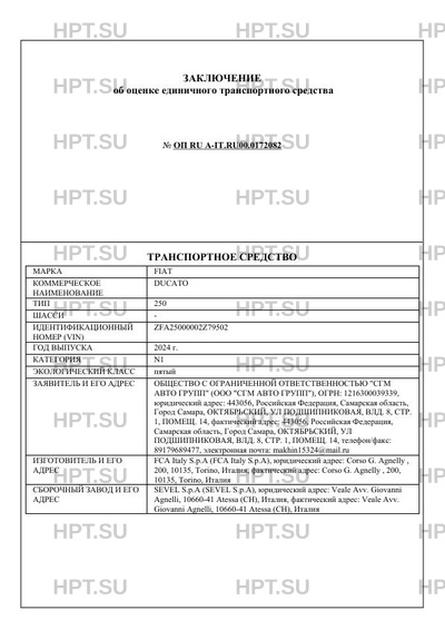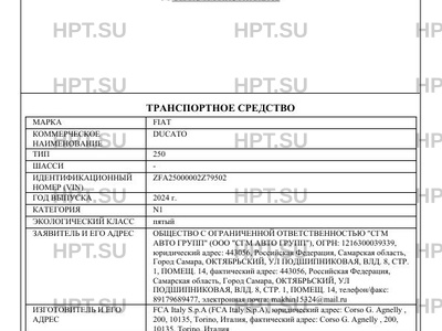 | Тип ТС | 250 |