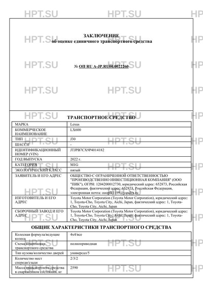 Номер документа ОП RU А-JP.RU00.0022260