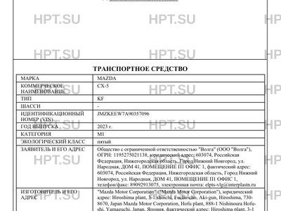 | Предприятие-изготовитель | "Mazda Motor Corporation" |