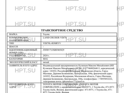 | Коммерческое наименование | LAND CRUISER VDJ78 |