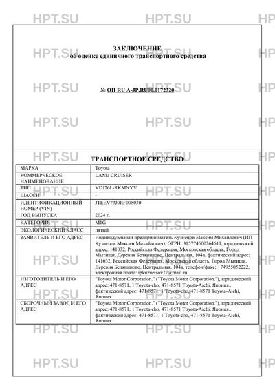 | Номер документа | ОП RU А-JP.RU00.0172320 |