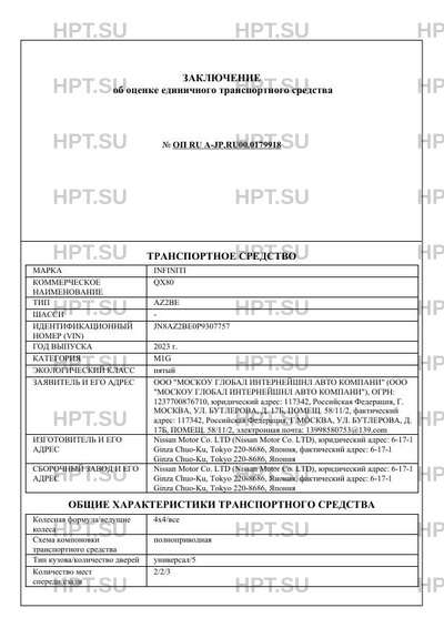 | Марка ТС | INFINITI |