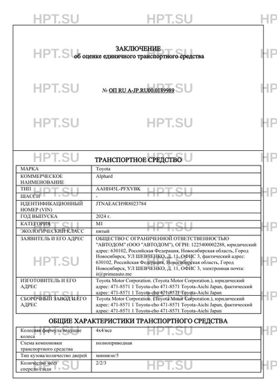 | Номер документа | ОП RU А-JP.RU00.0189989 |