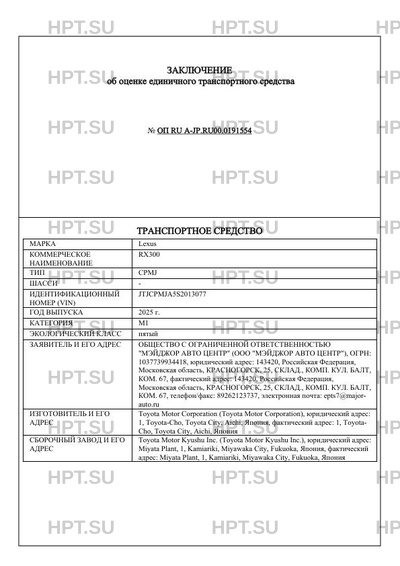 | Номер документа | ОП RU А-JP.RU00.0191554 |