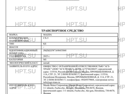 | Марка ТС | MAZDA |