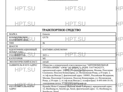 | Марка ТС | Genesis |