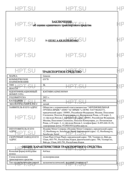 | Коммерческое наименование | GV70 |