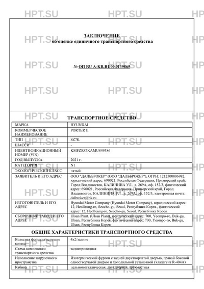 | Марка ТС | HYUNDAI |