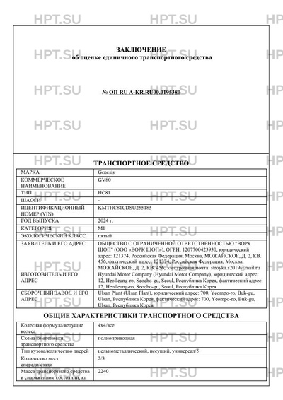 | Коммерческое наименование | GV80 |