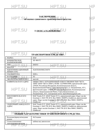 | Номер документа | ОП RU А-NL.RU00.0025865 |