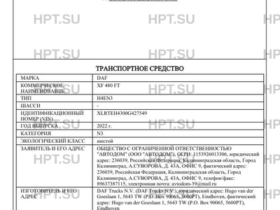 | Марка ТС | DAF |