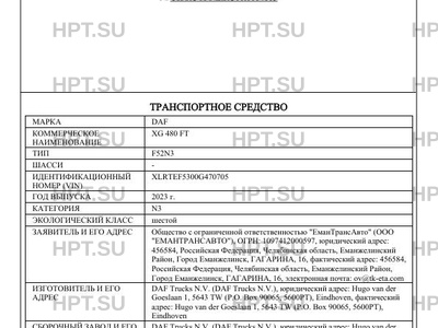 | Марка ТС | DAF |