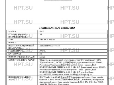 | Марка ТС | DAF |