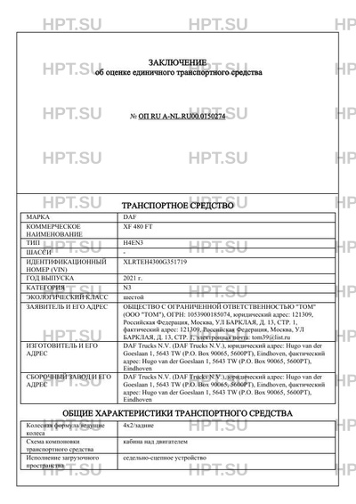 | ДВС | DAF/PACCAR,, MX13355H3, четырехтактный, с воспламенением от сжатия |