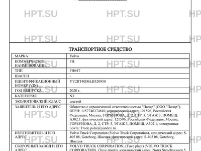 | Марка ТС | Volvo |